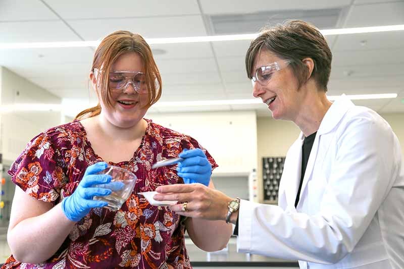 Our biochemistry and chemistry students work very closely with the faculty and their peers on relevant scientific questions in our new, state-of-the-art laboratory facilities. Our innovative curriculum, which emphasizes research, communication, and community, effectively prepares students for success in their careers.